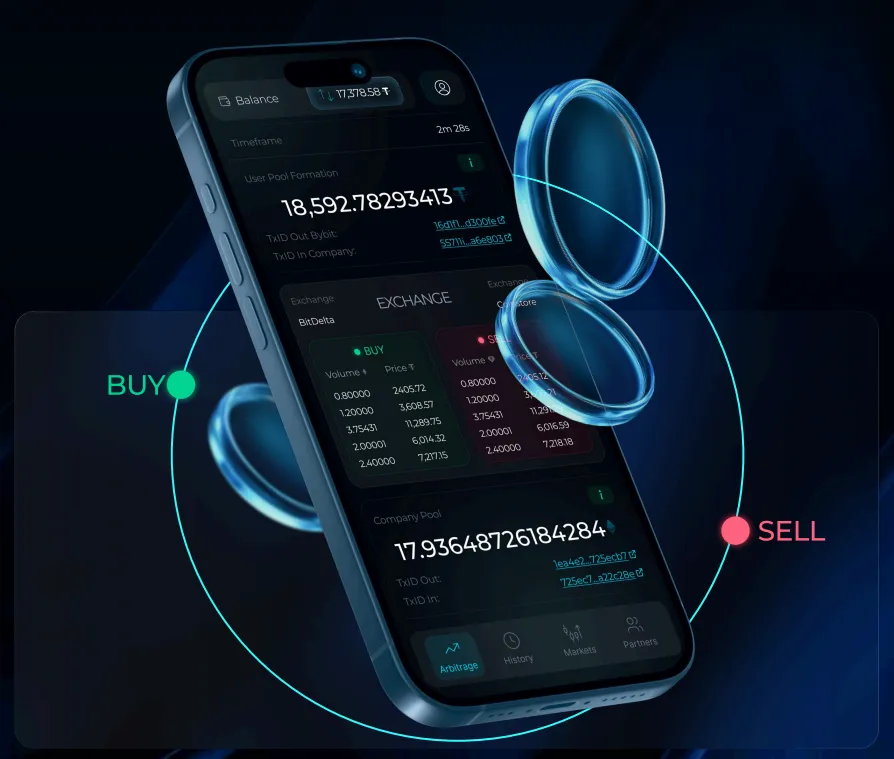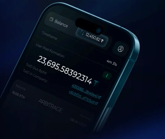 The trading contract defines the terms of the arbitrage partnership. Clients participate in arbitrage using assets such as USDT, ARBCORE tokens, ETH, and others.